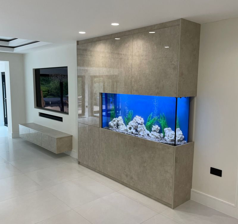 Marble Effect Aquarium (82) A PROJECT BY Marble Effect Aquarium (82) This marble effect aquarium was installed in a Middlesex home. 280 litres 120cm x 25cm x 75cm 12mm glass Tropical freshwater ← previous: 3 Metre Green Aquarium (81)